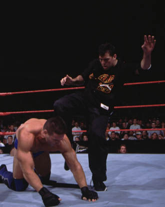 Shane is going for a field goal or he really wants to hurt Ken Shamrock...