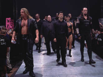 Shane leading the Corporate Ministery to the ring... Looks like business just picked up for competition...