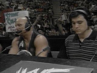 He's trying to do color commentating but, I think he's in a rush to leave right now...